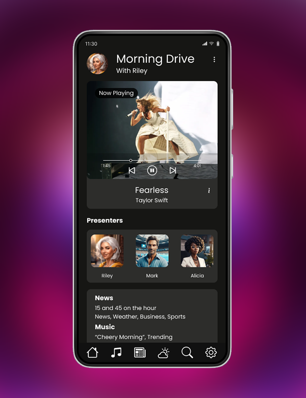 Radio AI is an app that allows users to create their own personalized AI-generated custom radio stations. Users can design their AI-powered radio hosts for news and banter and utilize AI to generate custom playlists according to their preferences.