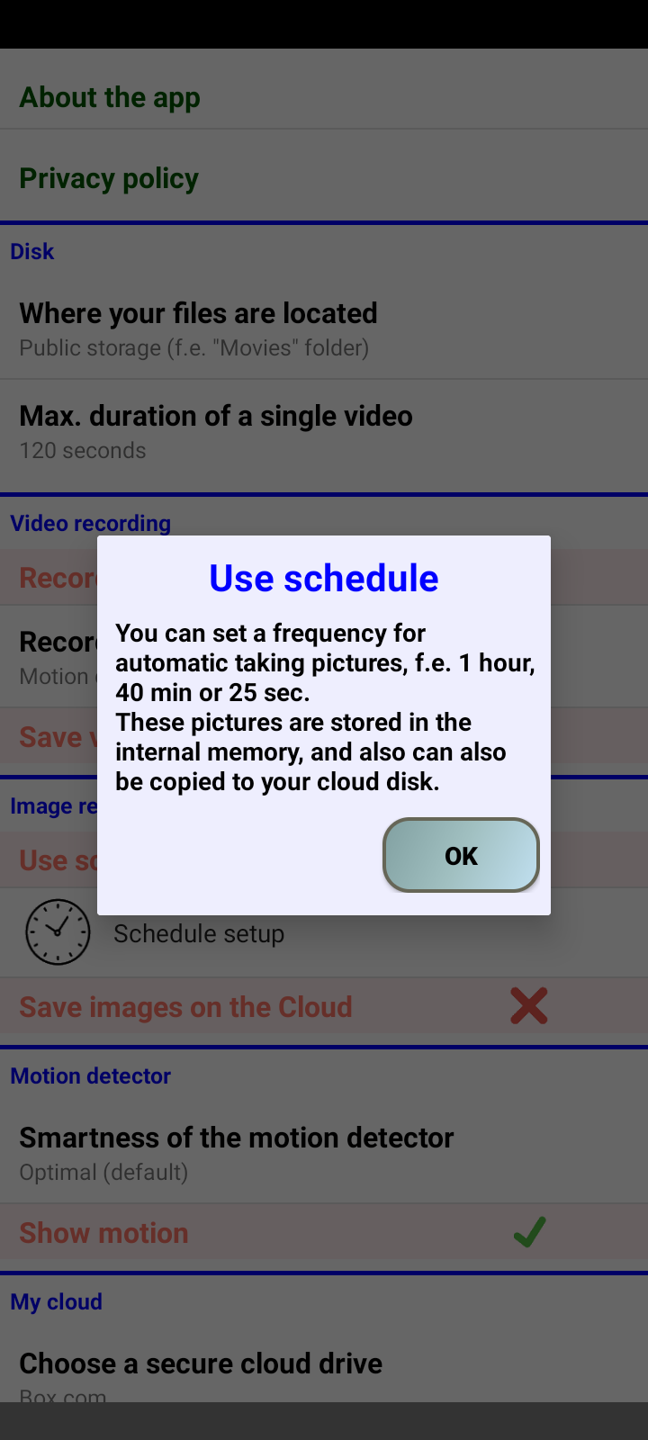 The main screen serves as the control center for the entire app, taking pictures is the main purpose of the program. Most features are accessible from this screen.