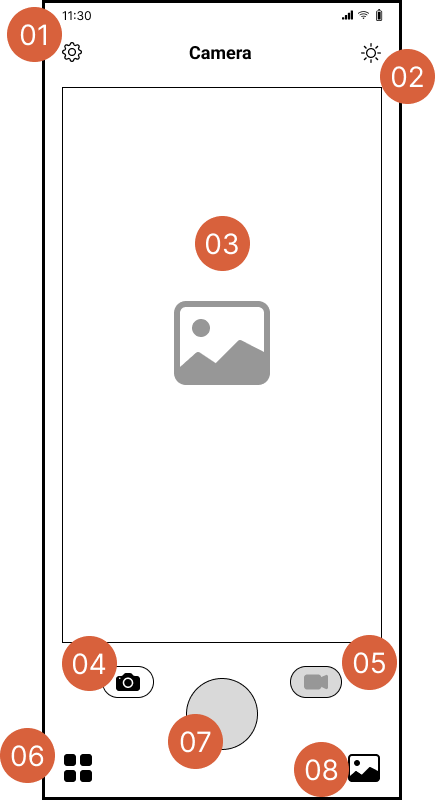 Several popular camera apps were analyzed while putting together the layout for the USB camera app, including those from Apple, Google, Open Camera, ProCam X, among other popular camera apps.
