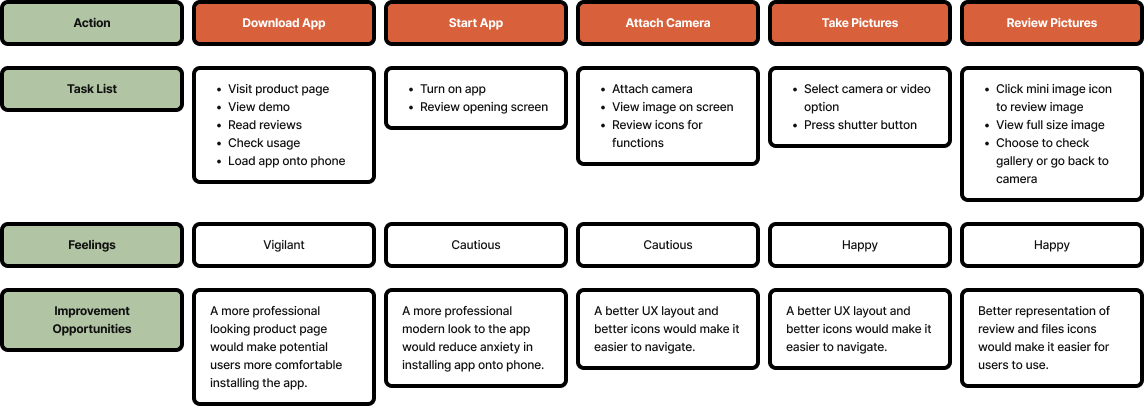 Each was evaluated for ease of use, user flow, functionality, and layout. These apps served as guides for the USB camera app.